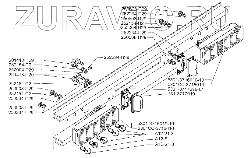 | 5301-3717036-01 | 5301-3717036-01 | Кронштейн крепления фонаря освещения номерного знака с гайками в сборе | Нет в продаже |