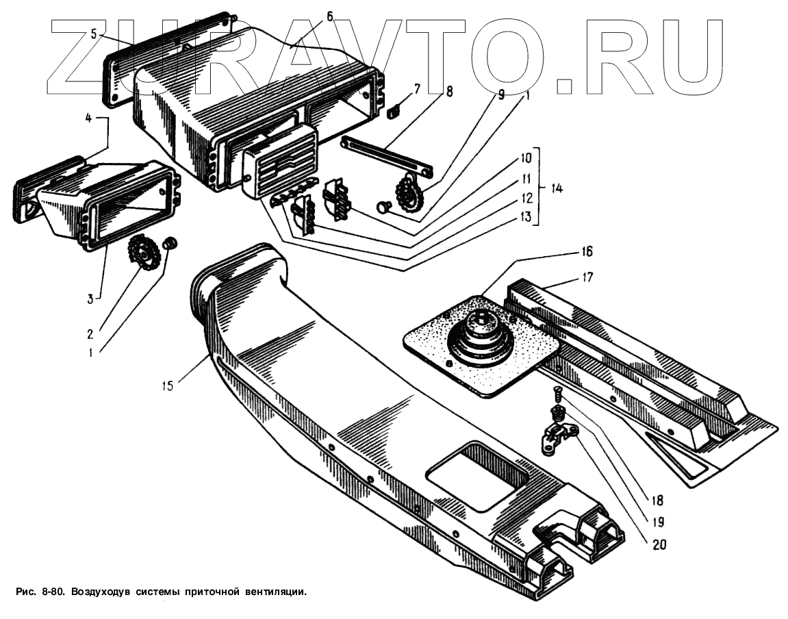 | 20 | 2141-8103054 | Кронштейн крепления воздухораспределителя | Нет в продаже |