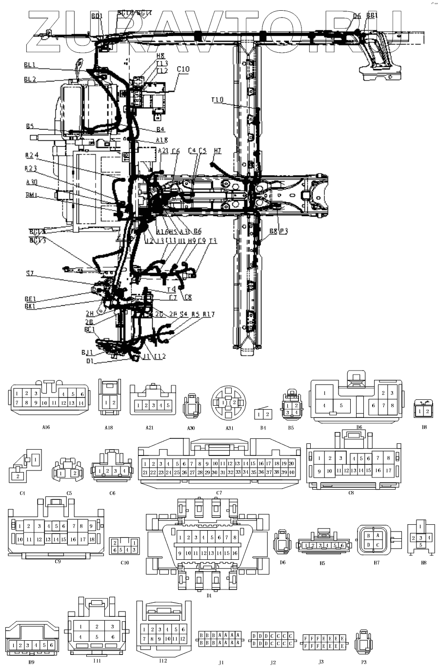 | BC1 | DJ7241-4.8/2.3-11 | К кабельной шине левой передней двери | Нет в продаже |