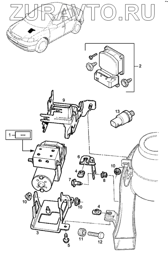 | 9 | 55 30 509 | Скрепление, кронштейн гидравлического блока, ABS | Нет в продаже |