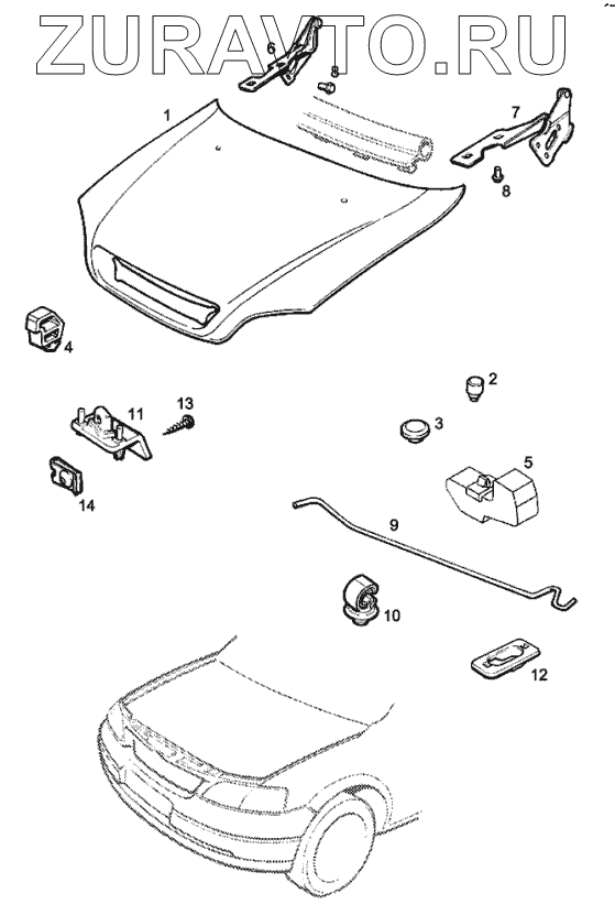 | 11 | 11 80 106 | Кронштейн, стойка капота | Нет в продаже |
