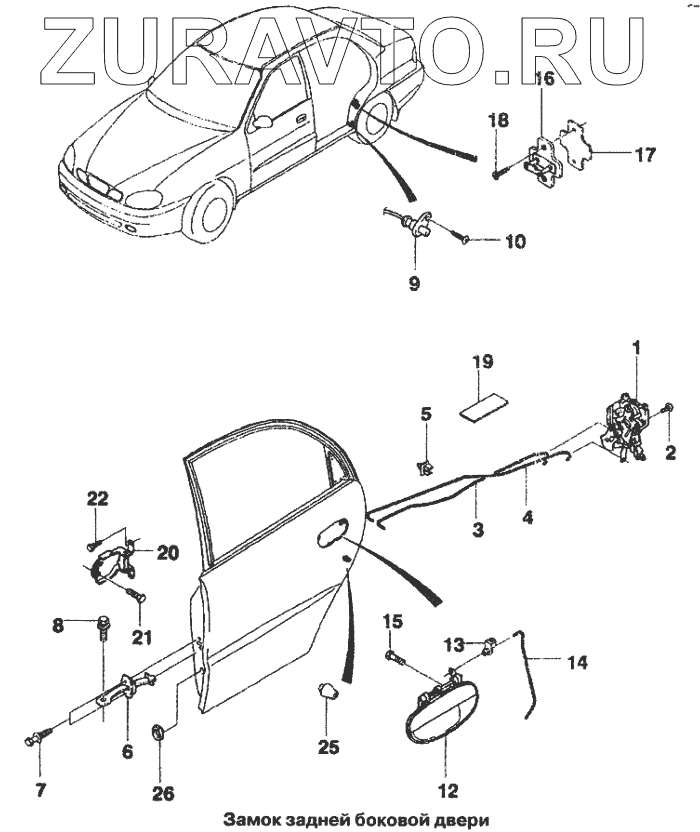 | 14 | 96304110 | Тяга наружной ручки задней двери | Нет в продаже |