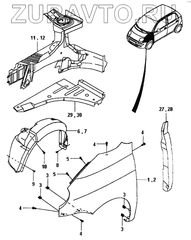 | 6 | 96562644 | ПОДКРЫЛЬНИК ПЕРЕДНИЙ | Нет в продаже |