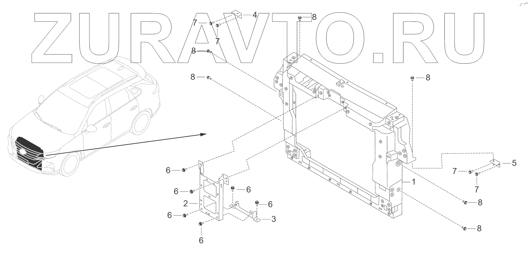 | 5 | 7190019ARX0000 | Левый опорный кронштейн переднего модуля | Нет в продаже |