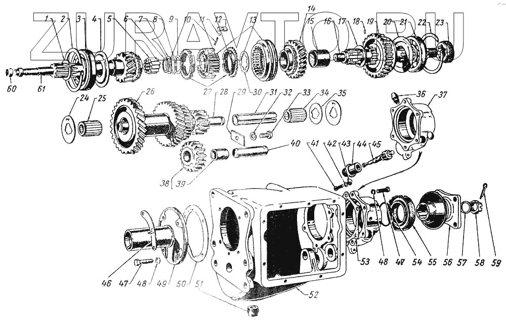 | 26 | 20-1701050-В | Блок шестерен промежуточного вала коробки передач | Нет в продаже |
