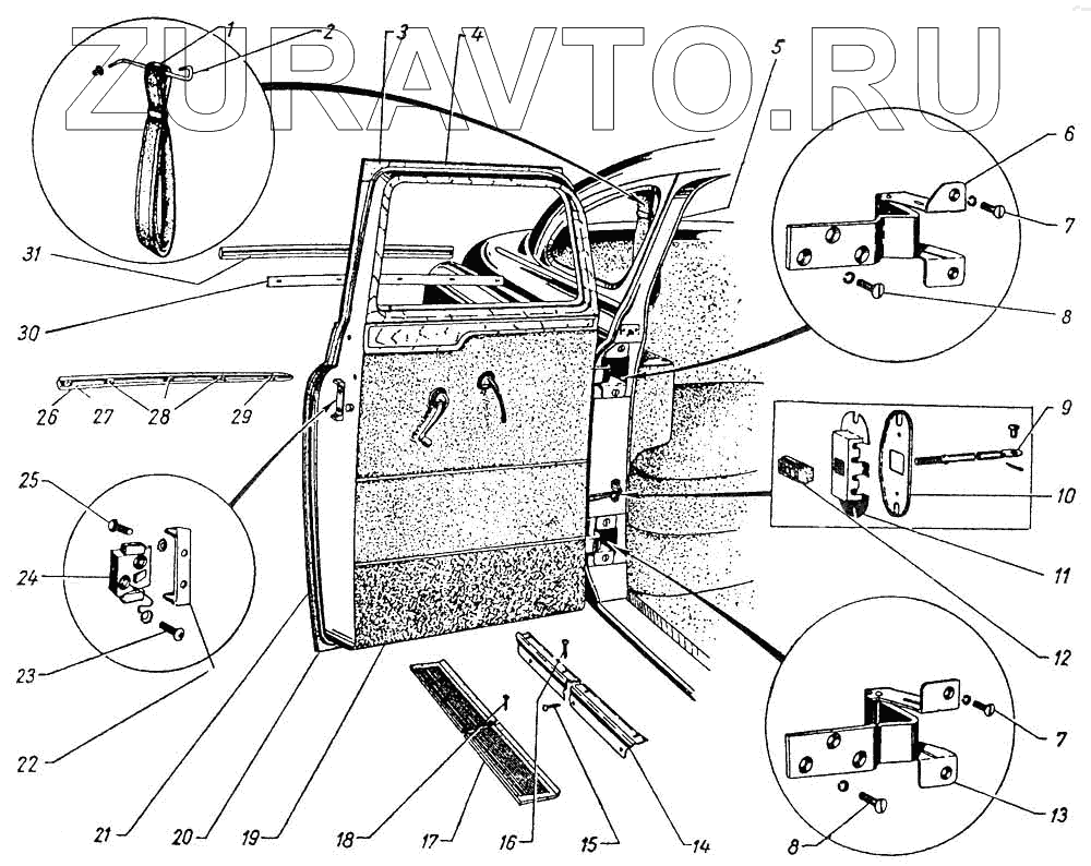 | 24 | 32-6106100 | Фиксатор передней двери в сборе | Нет в продаже |