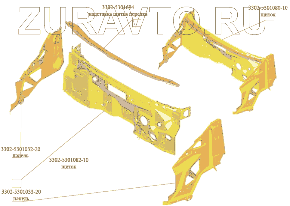 | 3302-5301080-10 | 3302-5301080-10 | Щиток передка с боковыми панелями передка | Нет в продаже |