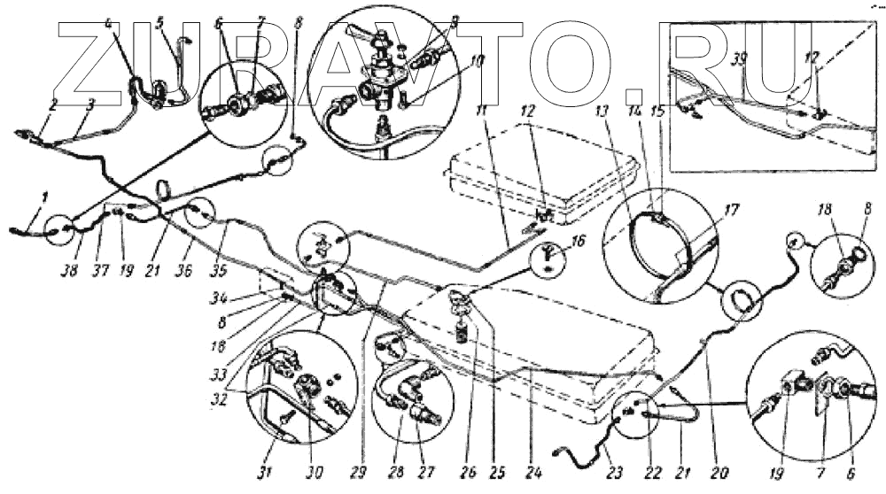 | 11 | 69-1104075 | Трубка бензинопровода от дополнительного бензинового бака к тройному кранику в сборе | Нет в продаже |