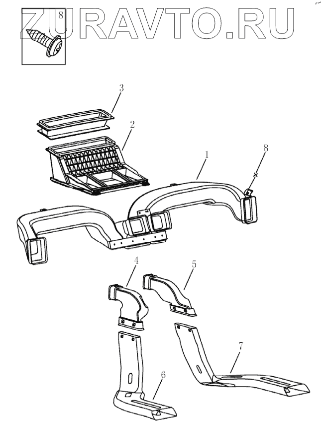 | 7 | 1068002515 | A/C LOWER RIGHT VENT PIPE | Нет в продаже |