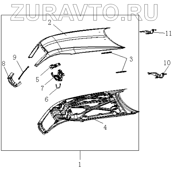 | 11 | 1062000039 | ENGINE HOOD RIGHT HINGE ASSY. | Нет в продаже |