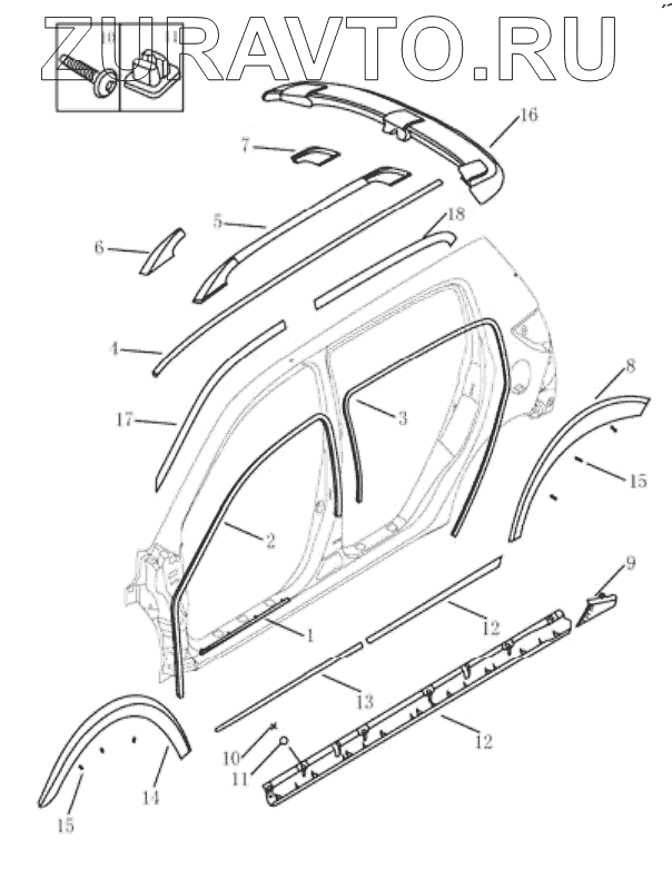 | 5 | 1018016404 | LEFT ROOF PANEL MOLDING | Нет в продаже |