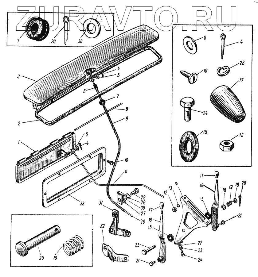| 17 | 408-5304182 | Ручка рычагов тяг крышек вентиляционного люка передка кузова и люка забора воздуха из кузова | Нет в продаже |