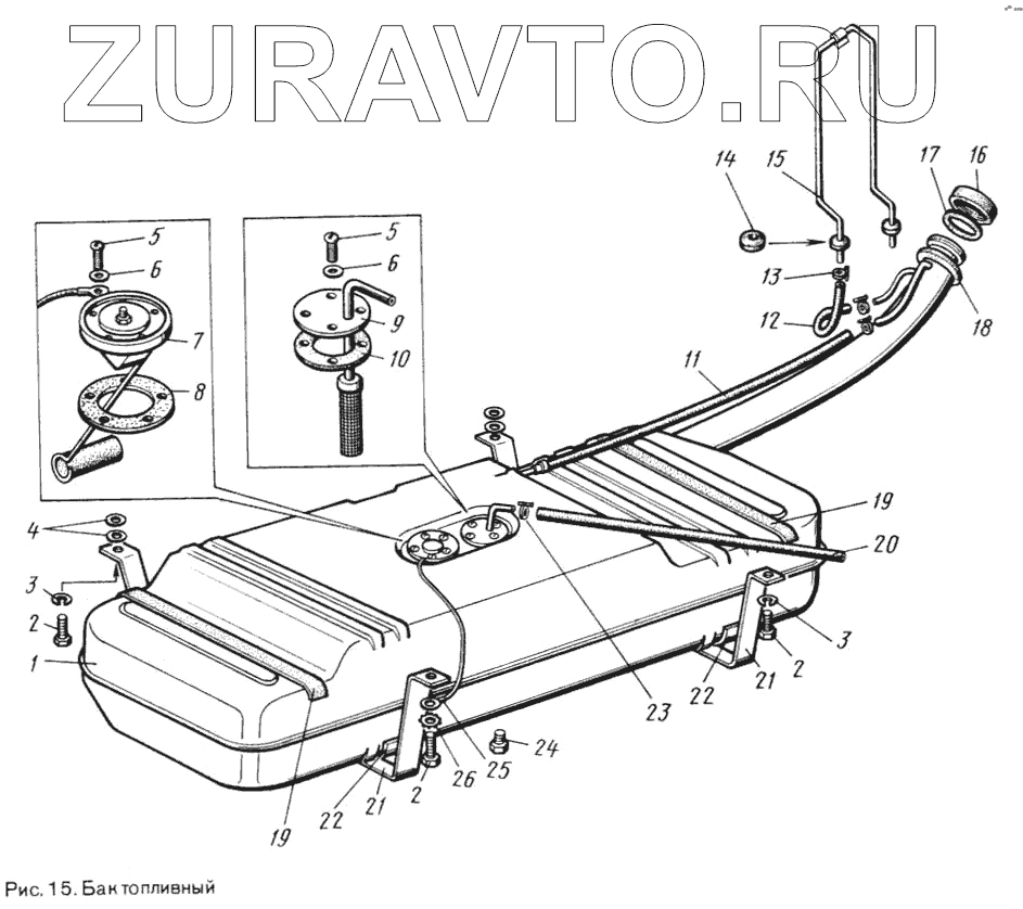 | 969М-1101010-20 | 969М-1101010-20 | Топливный бак в сборе (устанавливается с 01.91 г. Трубка выравнивания давления воздуха в баке приваривается на верхнем конце топливной трубы) | Нет в продаже |