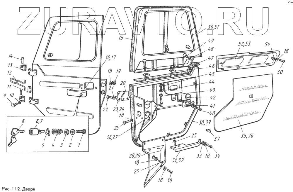 | 969М-6100011-10 | 969М-6100011-10 | Дверь с надставкой в сборе левая (устанавливается с 11.82 г., болты крепления петель на кузове для данных дверей закрываются петлями) | Нет в продаже |