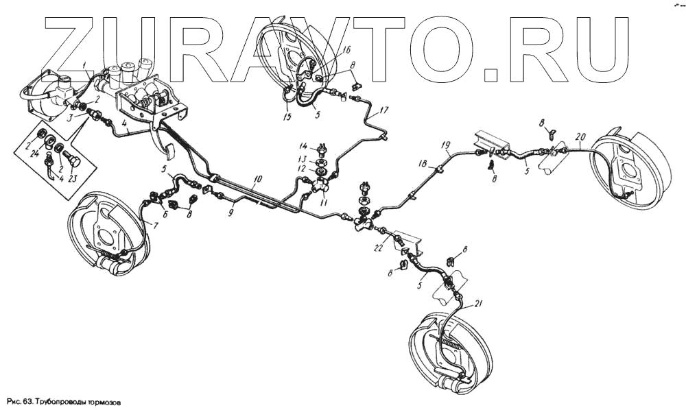 | 19 | 969М-3506080 | Трубка от соединителя к правому заднему тормозу в сборе (устанавливается с 10.92 г.) | Нет в продаже |