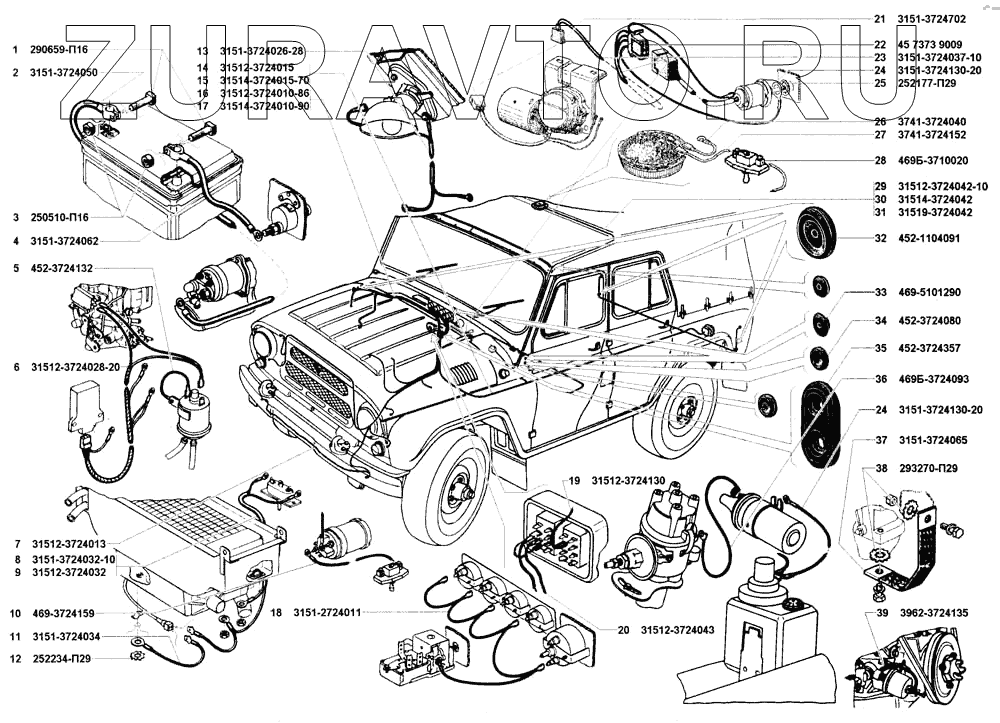 | 24 | 3151-3724130-20 | Провод "массы" электродвигателя смывателя | Нет в продаже |