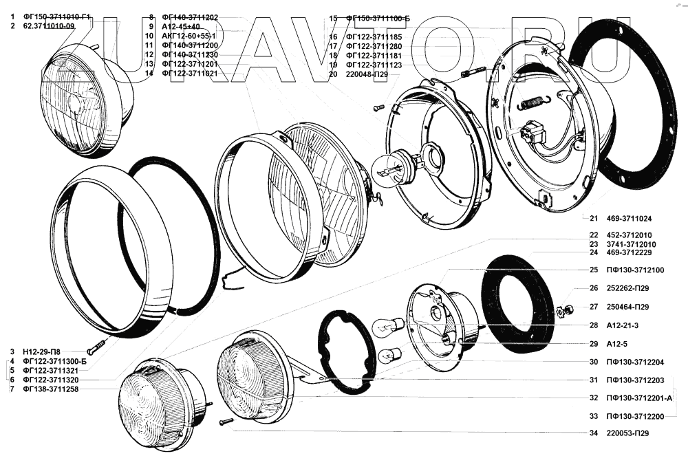 | 25 | ПФ130-3712100 | Корпус переднего фонаря в сборе | Нет в продаже |