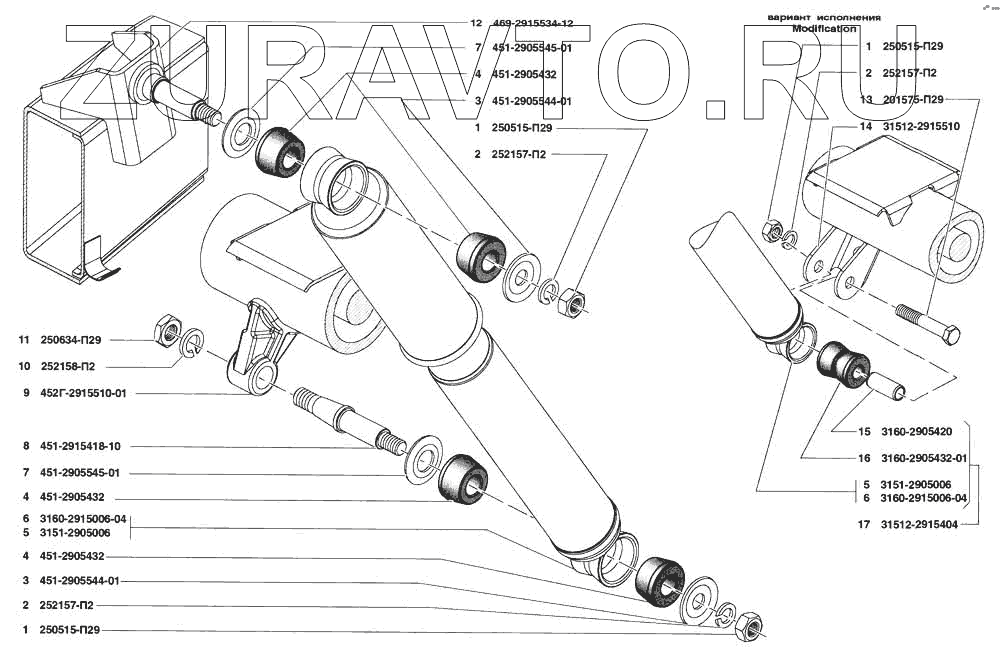 | 17 | 31512-2915404 | Амортизатор с нижним шарниром | Нет в продаже |