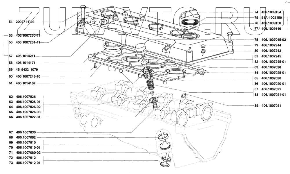 | 55 | 406.1007230-41 | Крышка клапанов в сборе | Нет в продаже |