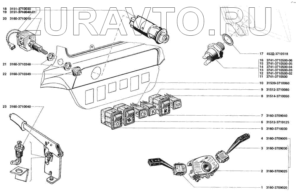 | 23 | 3160-3710040 | Выключатель ВК 409 контрольной лампы стояночного тормоза | Нет в продаже |