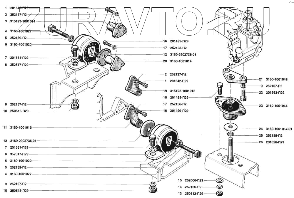 | 23 | 3160-1001044 | Опора двигателя задняя | Нет в продаже |