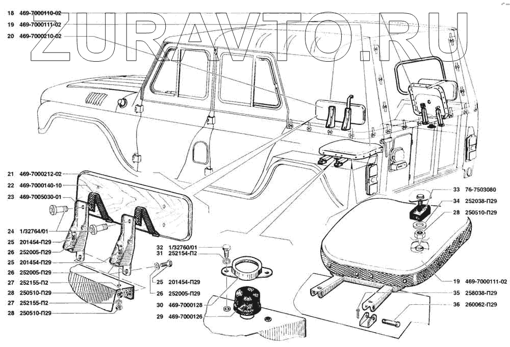 | 20 | 469-7000210-02 | Спинка заднего сиденья с кронштейнами в сборе | Нет в продаже |