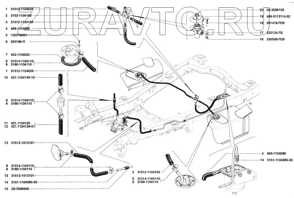 | 1 | 31512-1104029 | Шланг топливопровода от правого бака к кранику | Нет в продаже |