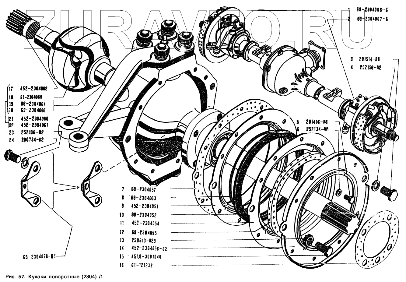 | 1 | 69-2304006-Б | Кулак поворотный переднего моста с тормозом правый в сборе | Нет в продаже |