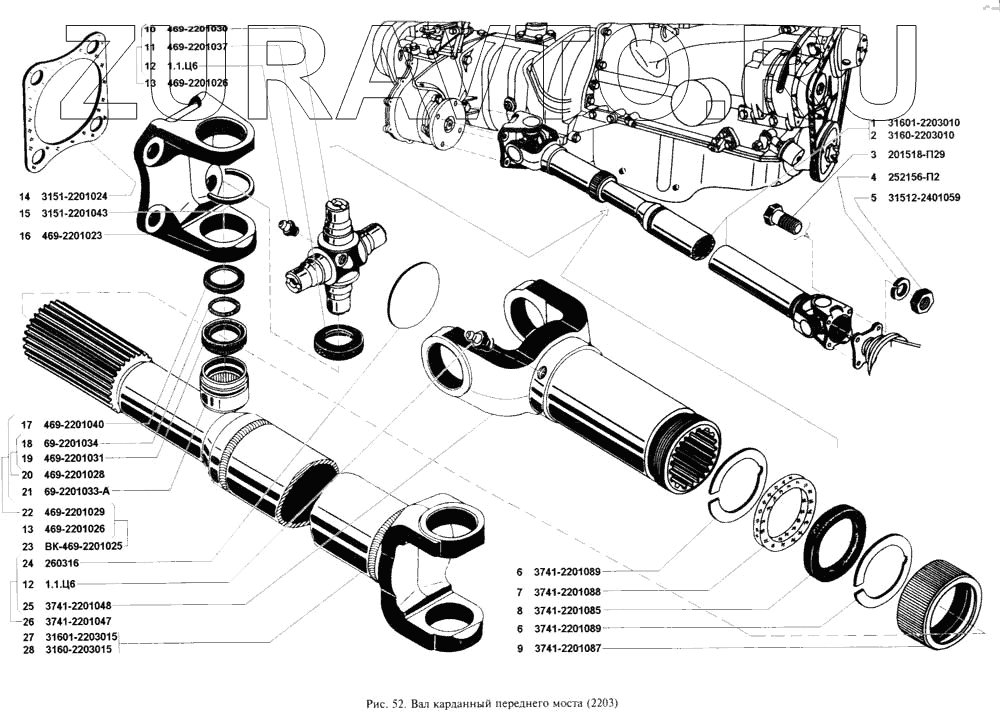 | 27 | 31601-2203015 | Вал карданный переднего моста-сварка | Нет в продаже |