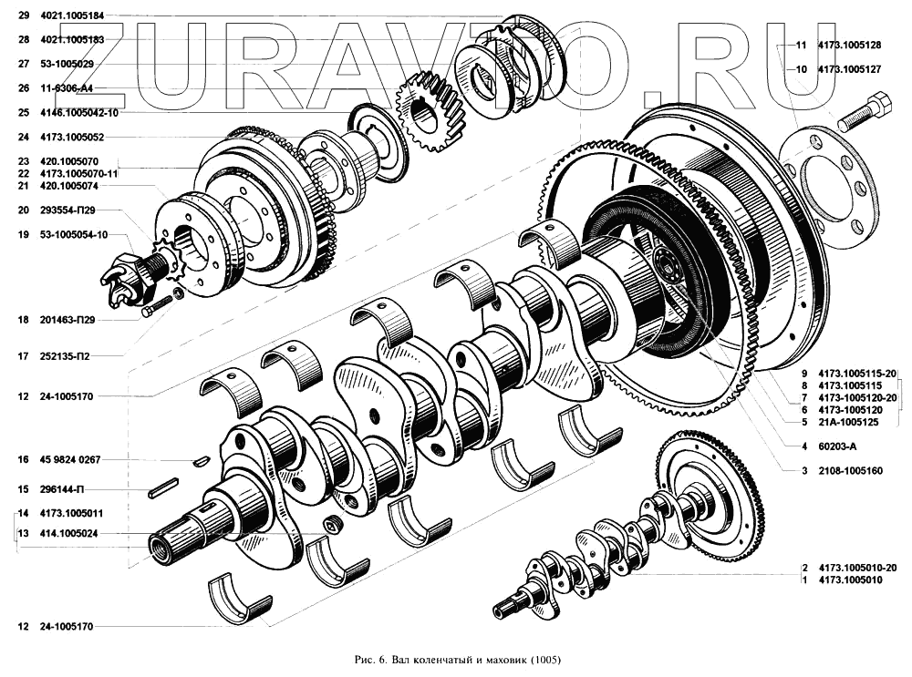 | 2 | 4173.1005010-20 | Вал коленчатый, маховик и сцепление в сборе | Нет в продаже |