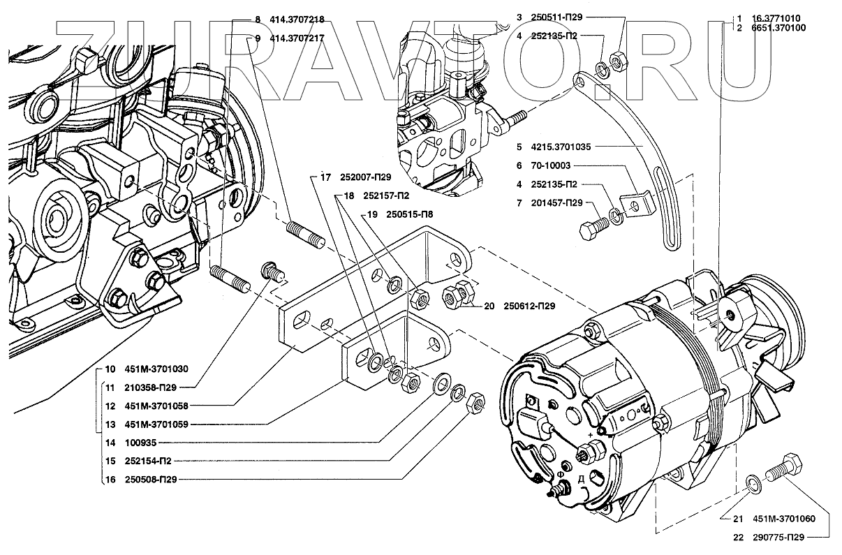 | 10 | 451M-3701030 | Кронштейн крепления генератора | Нет в продаже |