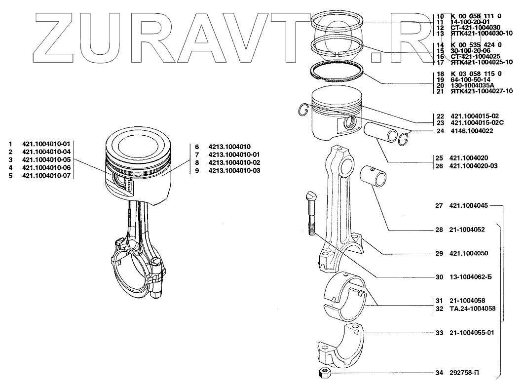 | 4 | 421.1004010-06 | Поршень и шатун в сборе | Нет в продаже |