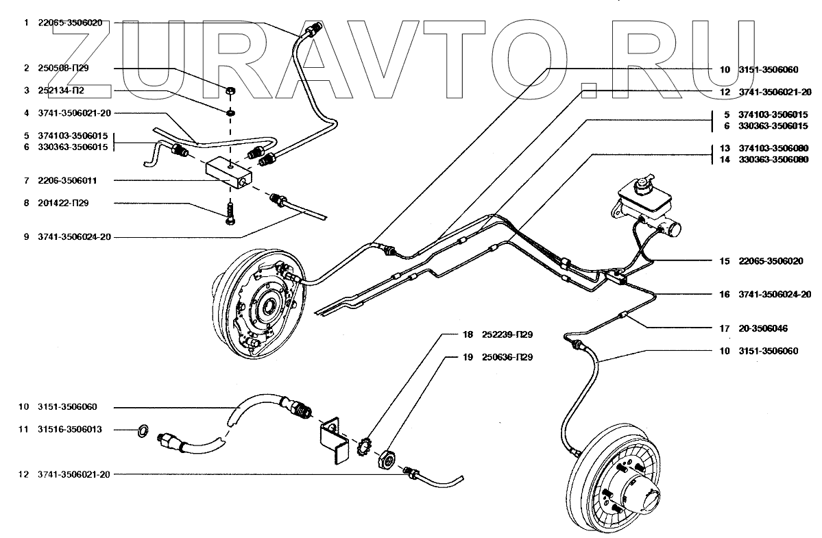| 13 | 374103-3506080 | Трубка от вторичной камеры главного цилиндра к регулятору давления | Нет в продаже |
