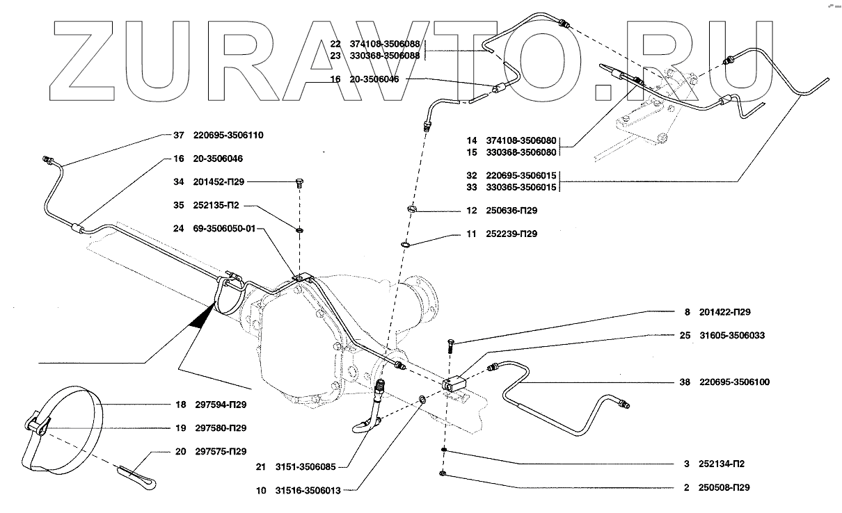 | 37 | 220695-3506110 | Трубка от тройника к левому заднему тормозу | Нет в продаже |