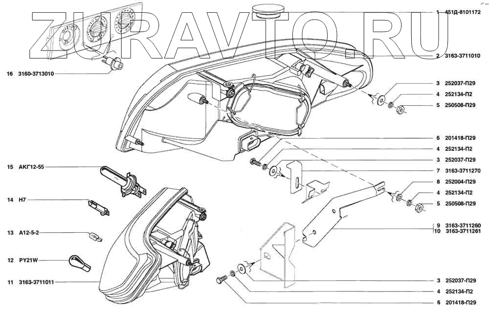 | 11 | 3163-3711011 | Блок-фара левая АLRU.676512.005 | Нет в продаже |