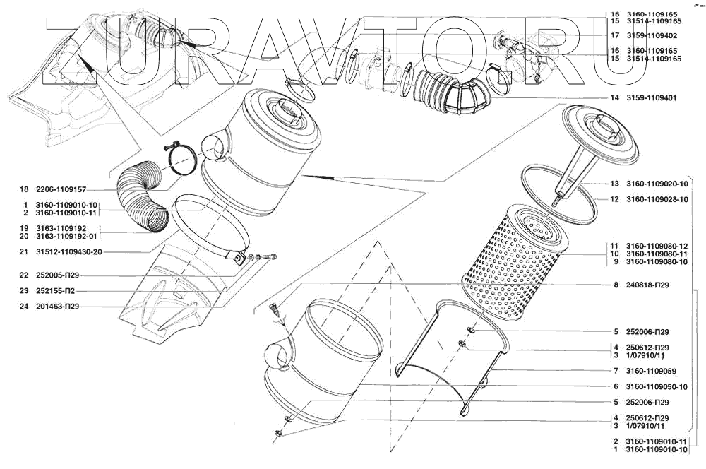 | 2 | 3160-1109010-11 | Фильтр воздушный в сборе | Нет в продаже |