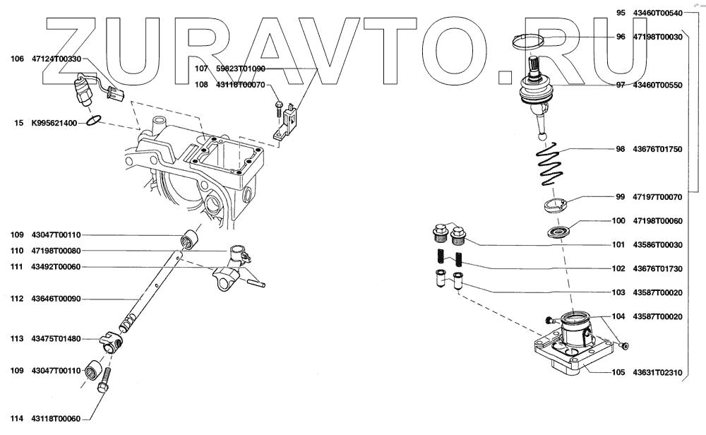 | 95 | 43460Т00540 | Механизм переключения в сборе | Нет в продаже |