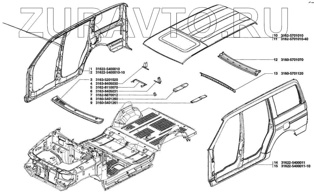 | 11 | 3162-5701010-40 | Панель крыши | Нет в продаже |