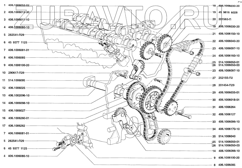 | 22 | 406.1006040-20 | Цепь привода распределительных валов верхняя (z=92) | Нет в продаже |