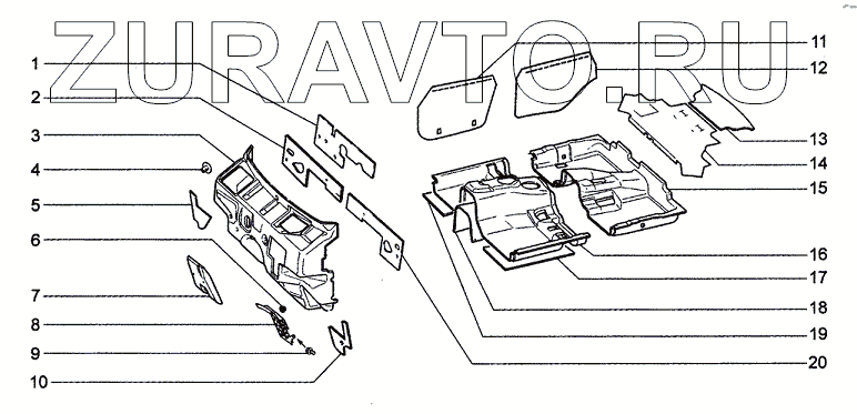 | 14 | 21230-5007250-00-0 | Обивка изоляционная пола багажника передняя | Нет в продаже |