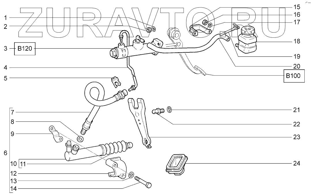 | 12 | 21230-1602492-00 | Кронштейн рабочего цилиндра привода сцепления | Нет в продаже |
