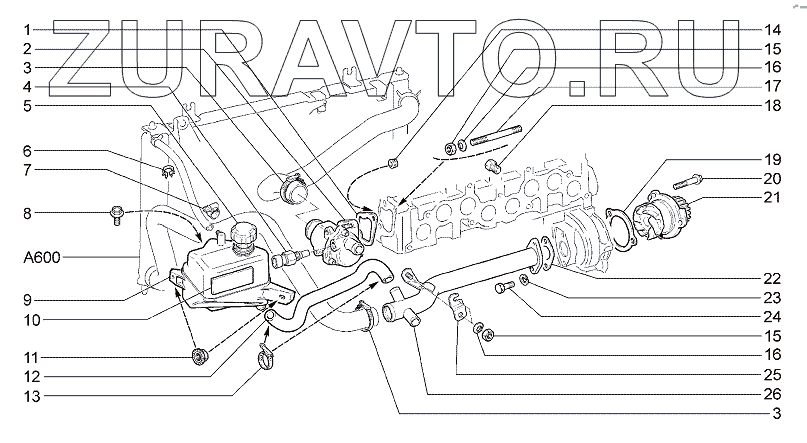 | 26 | 21900-1303055-00 | Труба подводящая водяного насоса в сборе | Нет в продаже |