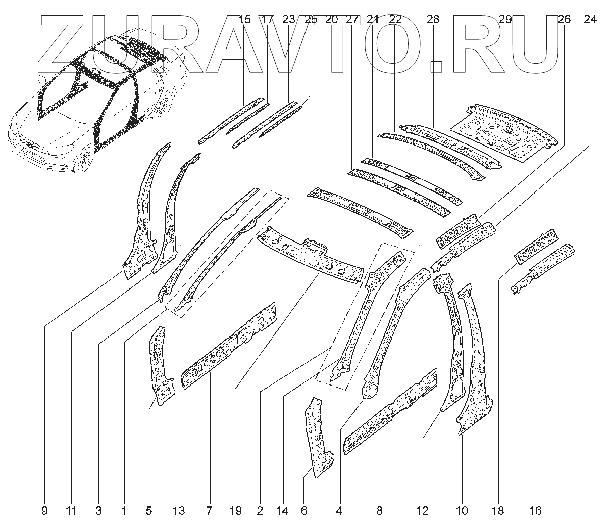 | 20 | 11180-5701050-00 | Поперечина крыши в сборе | Нет в продаже |