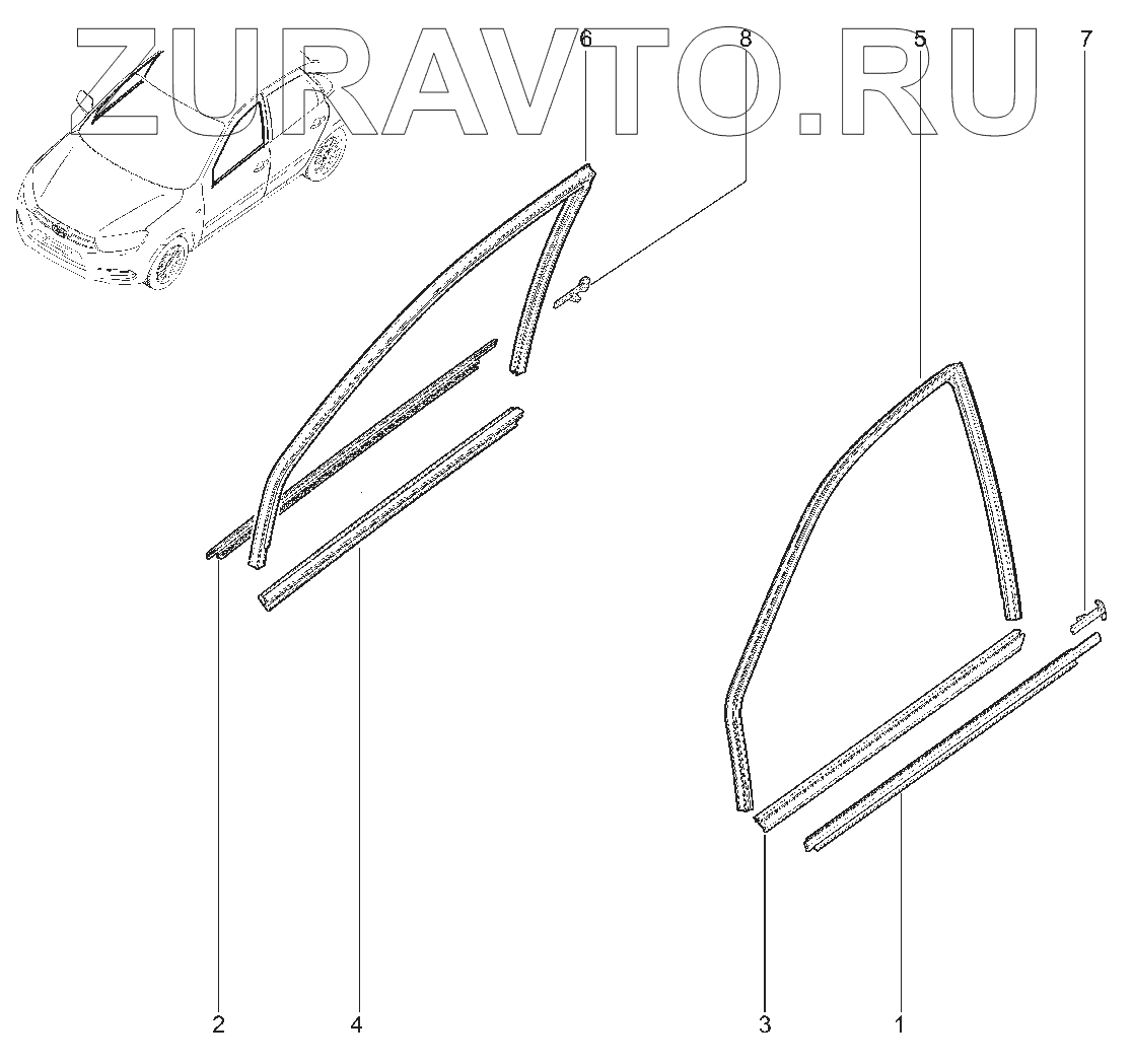| 2 | 11180-6103290-02 | Уплотнитель опускного стекла передней правой двери | Нет в продаже |