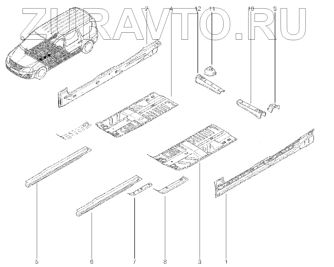 | 6 | 751758525R | Средняя часть лонжерона ПЛ | Нет в продаже |