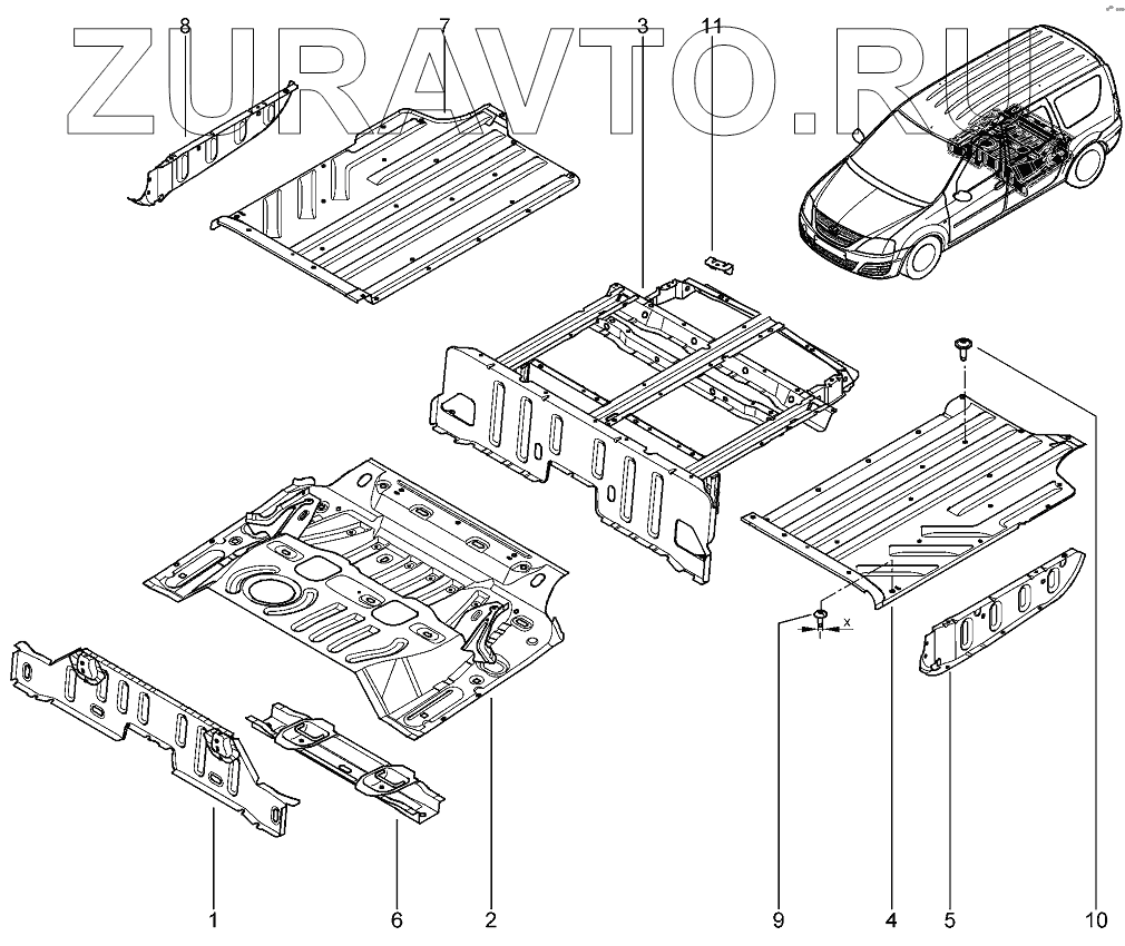 | 2 | 6001548778 | Передняя панель пола заднего в сборе | Нет в продаже |