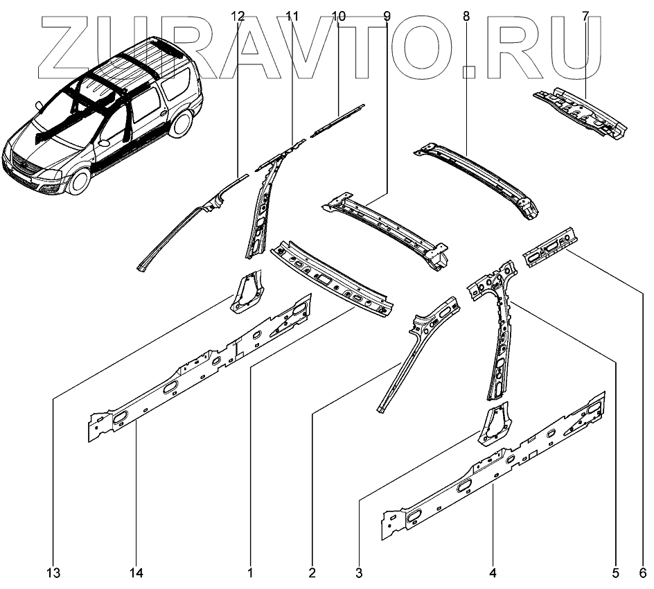 | 9 | 6001548809 | Средняя поперечина крыши в сборе | Нет в продаже |