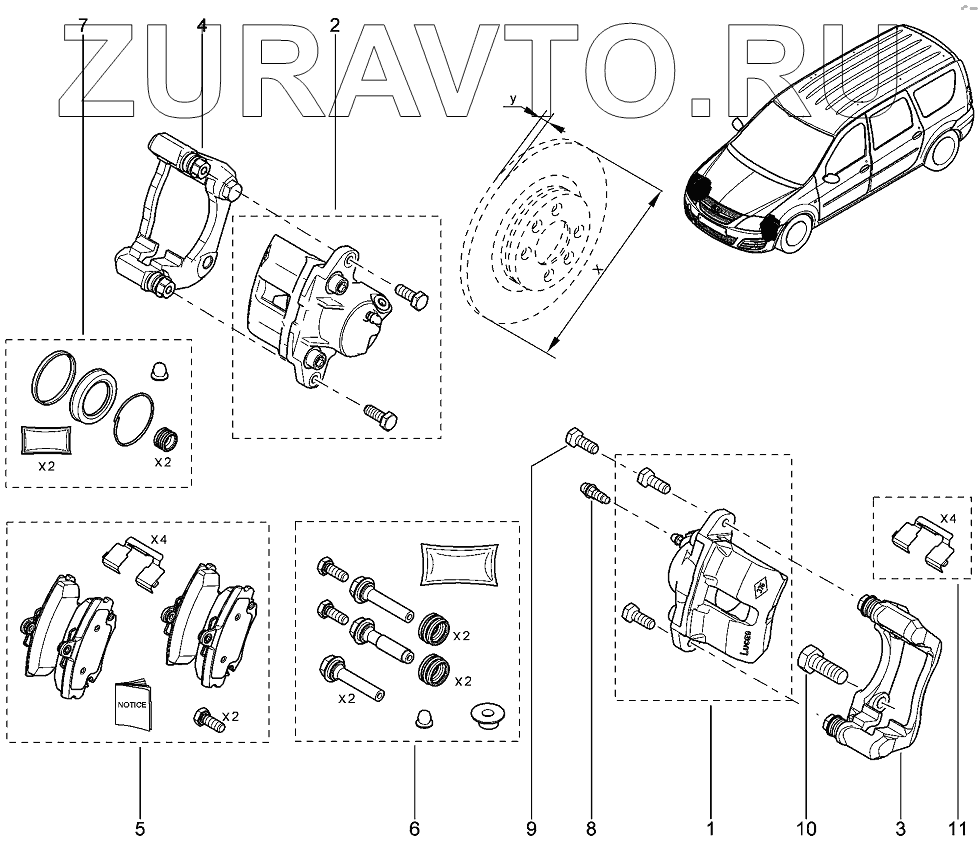 | 11 | 410271417R | Скоба пружинная передних тормозных колодок | Нет в продаже |