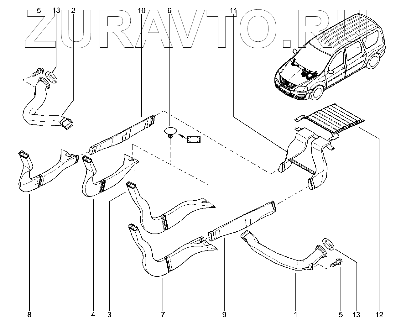 | 12 | 279272450R | Диффузор в ноги пассажира 3-го ряда | Нет в продаже |