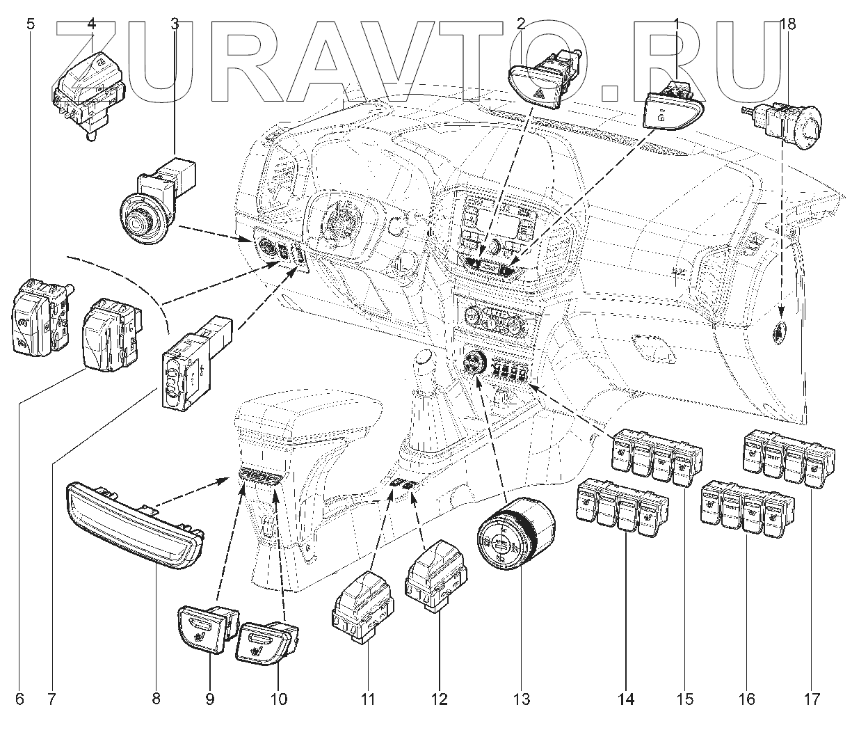 | 18 | 681995427R | Выключатель подушки безопасности переднего пассажира | Нет в продаже |